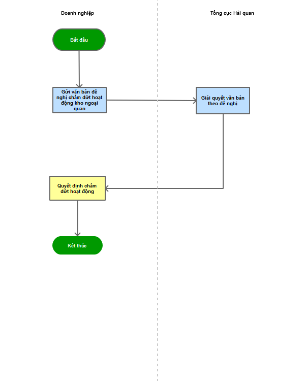 Doanh nghiệp có văn bản đề nghị chấm dứt hoạt động kho ngoại quan.